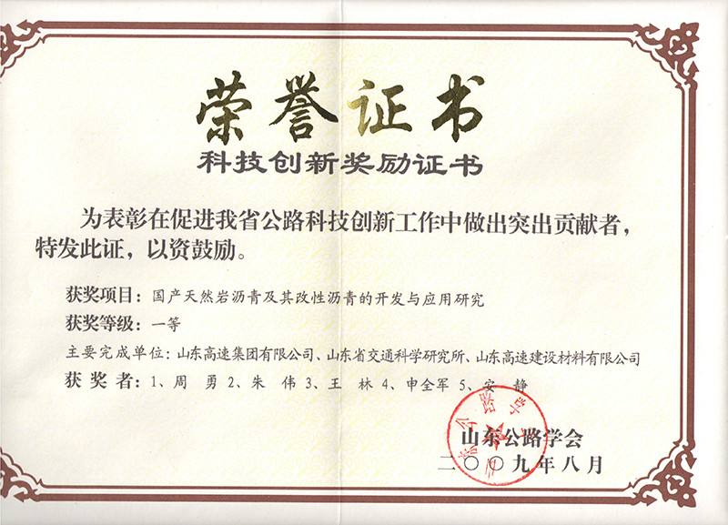 · 参与制定交通运输部岩沥青国家标准、山东省地方标准